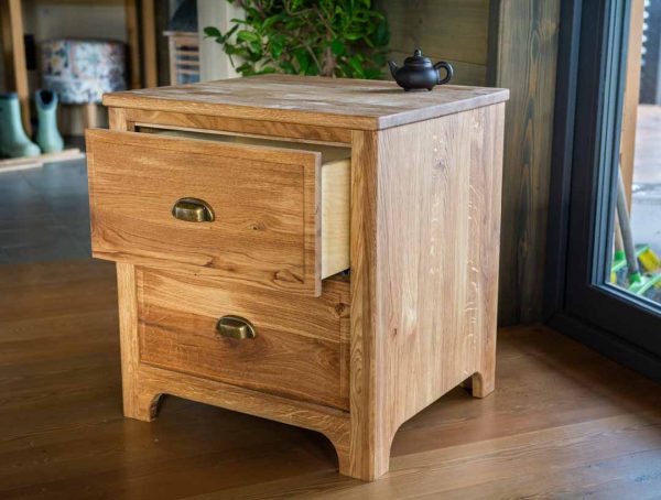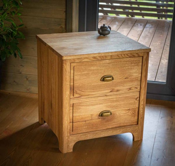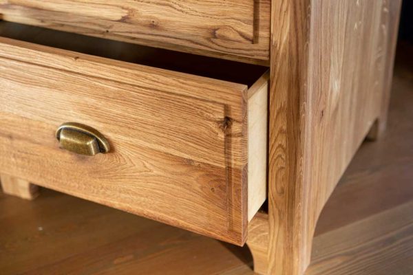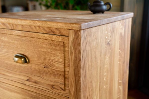 Дубовая тумбочка отлично подходит для загородного дома, где преобладает отделка из дерева, натуральных материалов.